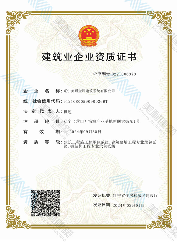 遼寧美耐金屬建筑系統(tǒng)有限公司位于遼寧(營口)沿海產(chǎn)業(yè)基地,專注于預(yù)制金屬建筑系統(tǒng)領(lǐng)域,是一家集工業(yè)建筑設(shè)計(jì)、制作、施工及相關(guān)的技術(shù)咨詢與服務(wù)為一體的綜合性服務(wù)企業(yè)。作為國家鋼結(jié)構(gòu)協(xié)會(huì)會(huì)員、中國建筑金屬結(jié)構(gòu)協(xié)會(huì)會(huì)員單位與國家高新技術(shù)企業(yè),美耐建筑集建筑工程施工總承包、鋼結(jié)構(gòu)工程專業(yè)承包等多種資質(zhì)于一身,并擁有22項(xiàng)鋼結(jié)構(gòu)建筑領(lǐng)域?qū)@?項(xiàng)軟件著作權(quán)。